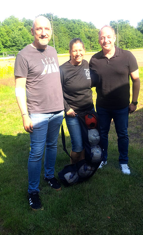 Fußbälle als Dankeschön für die Trainingszeit während der Sanierung Sporthalle Bückmannshof (Carsten Goschnik + Andreas Bongard, Sportfreunde Altenessen 1918 e.V.)
