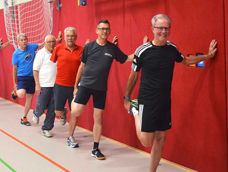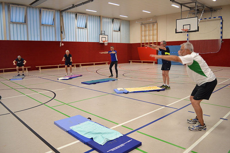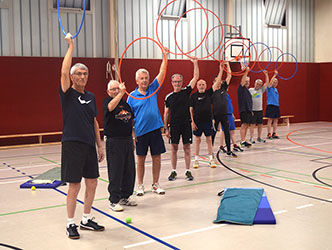 Regelmäßig treffen wir uns am Montag kurz vor 19:30 in der Sporthalle in Altenessen. Nach der Begrüßung und Besprechung fangen wir mit den Aufwärmübungen an mit Musik im Hintergrund. Danach hat jeder seinen eigenen Übungsplatz und wir fangen mit den Gymnastik Übungen an. Die Turngruppe wird seit Januar 2022 von unserem neuen Übungsleiter Johannes Kaschuba geleitet. Durch die Übungen bleiben wir in Schwung und bleiben dadurch jung.